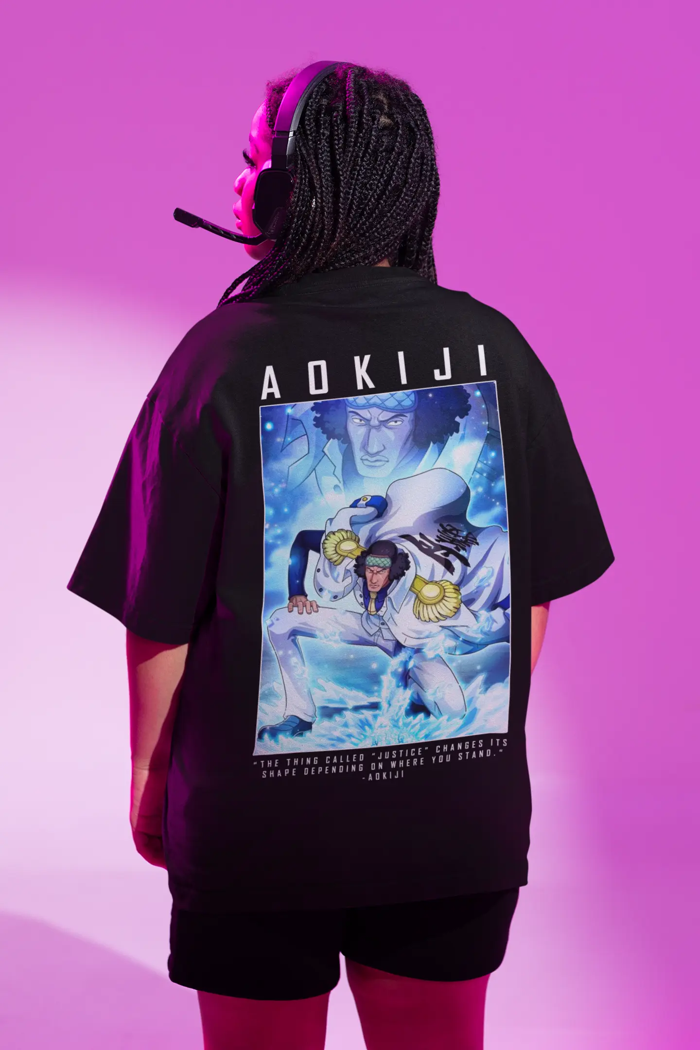 Introducing JawDrop’s Aokiji Oversized T-Shirt, a chilling homage to the enigmatic Marine admiral from the iconic One Piece anime series.