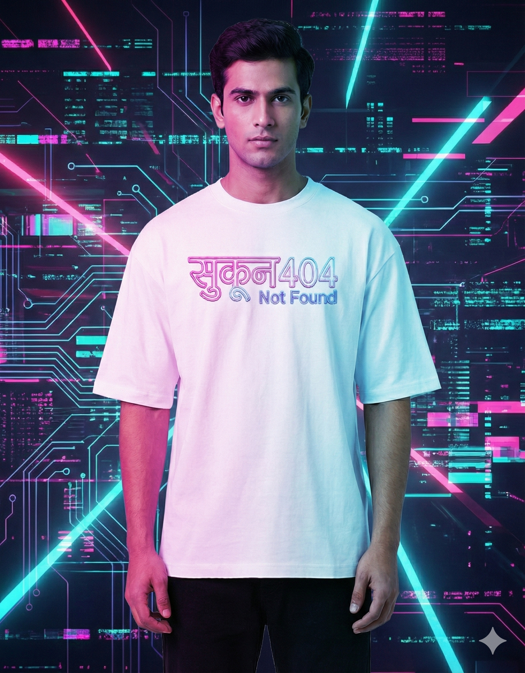 The Graphic: High-quality “सुकून 404 Not Found” digital glitch print.