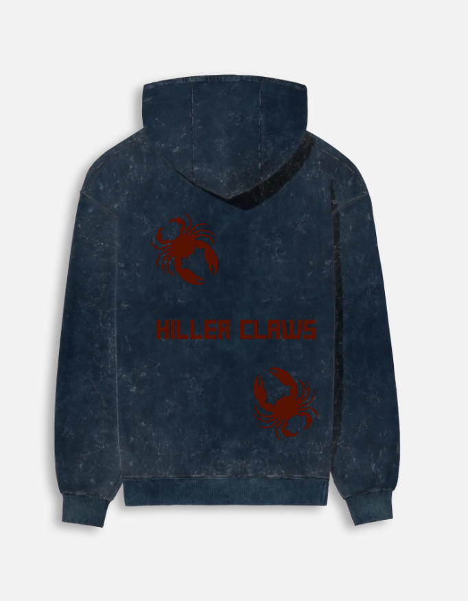 Jawdrop “Killer Claws” Acid Wash Hoodie – Navy