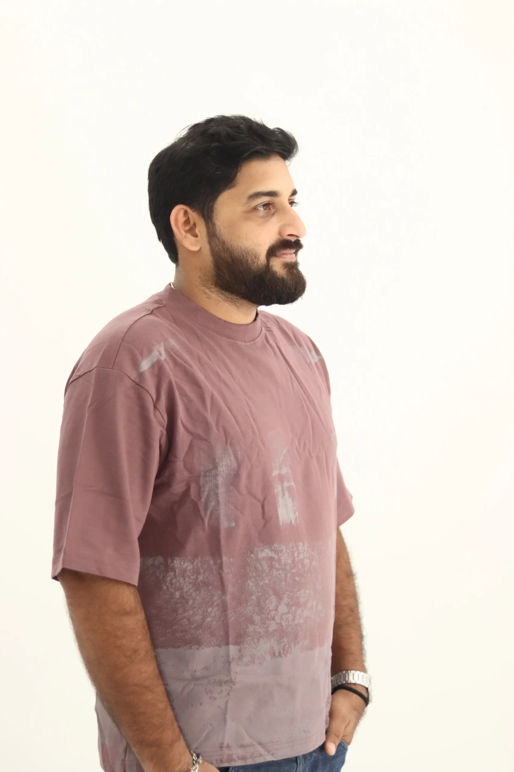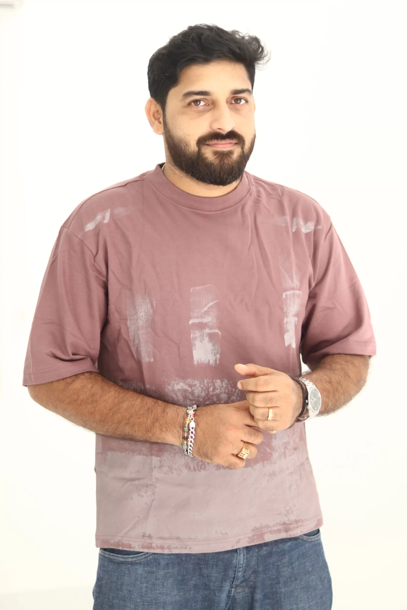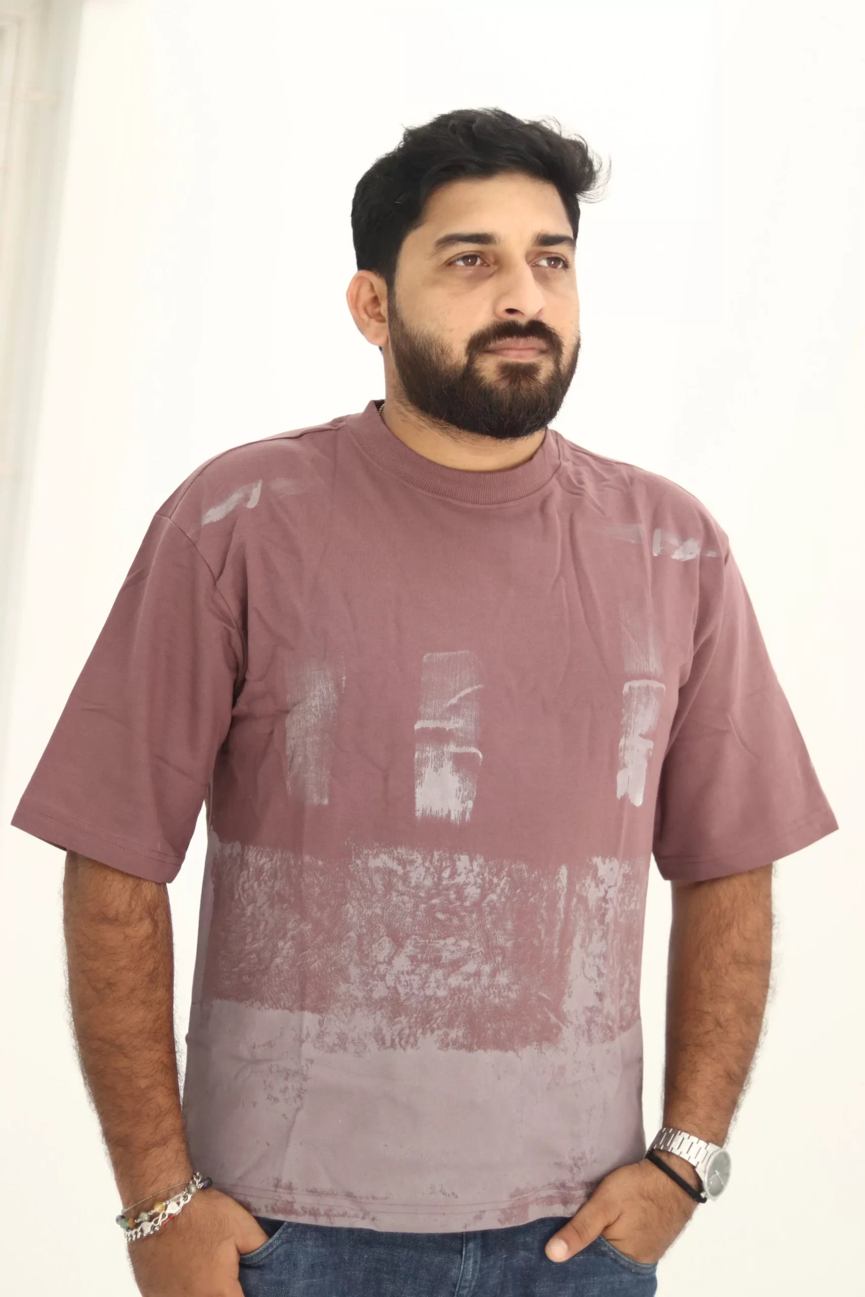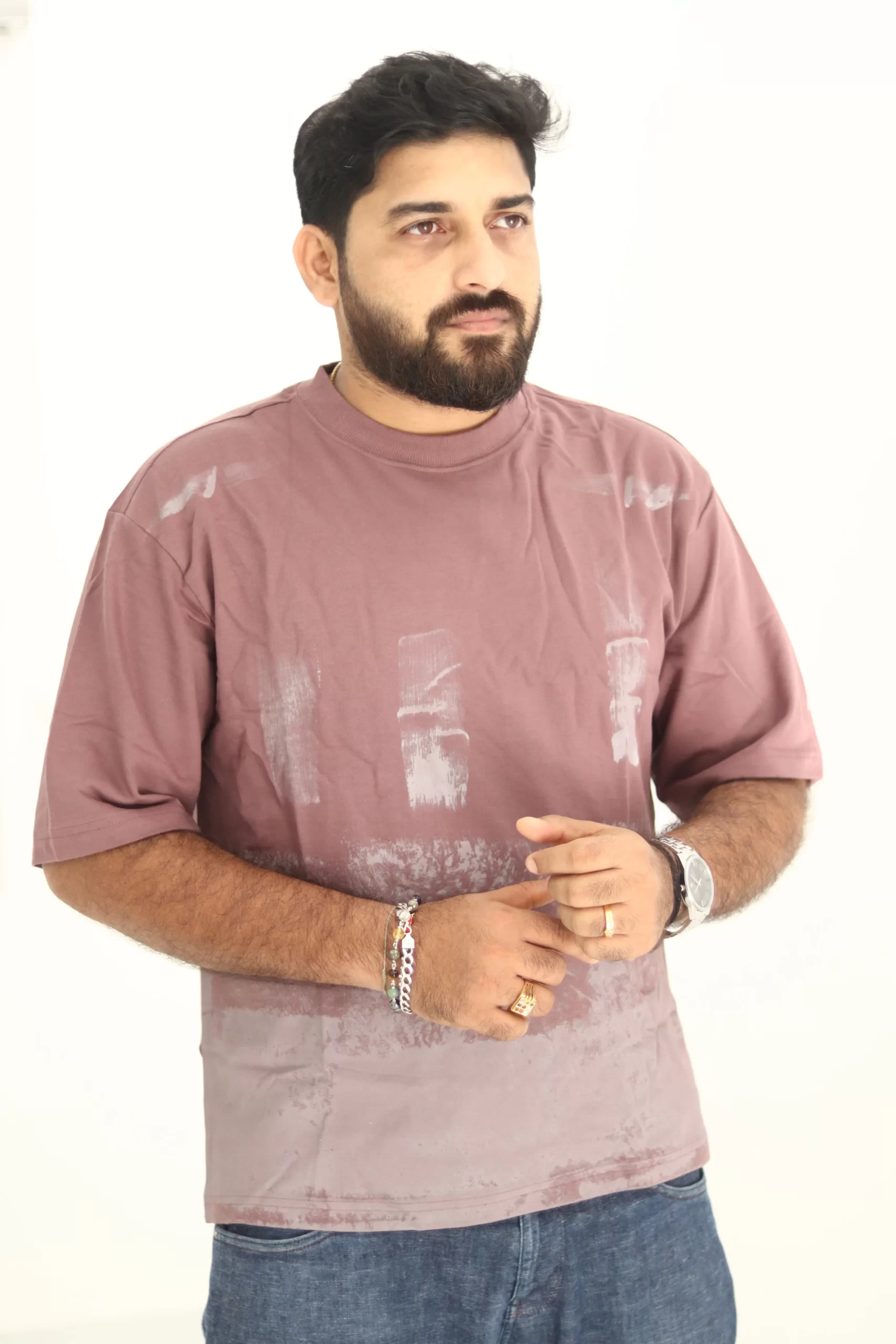 Step up your casual wardrobe with this unique mauve t-shirt, crafted from premium 240 GSM French terry cotton for unbeatable comfort and durability. The standout abstract brush print design adds a modern twist that sets this piece apart, making it a must-have for style-conscious individuals.​